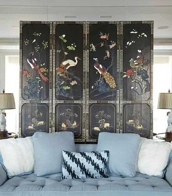 新中式风格是设计师对传统文化的再设计,对中式风韵的现代演绎。当中式古典屏风上灵动花鸟图案遇到西方布艺装饰的几何纹样,这种传统元素与现代元素的碰撞,注定带来不一般的视觉震撼与享受。